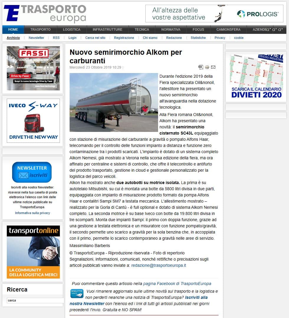 TrasportoEuropa – 2019 Oil Non Oil Roma – Posted on 5 Febbraio 202029 Dicembre 2022 by alkom Articoli su TrasportoEuropa